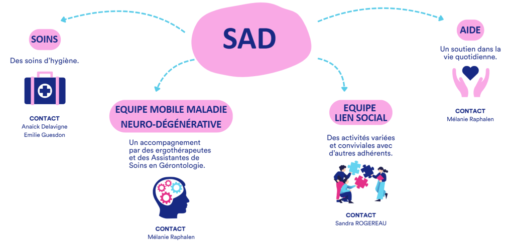 Le Service A Domicile (SAD) est à votre disposition pour s’ajuster à l’ensemble de vos besoins.