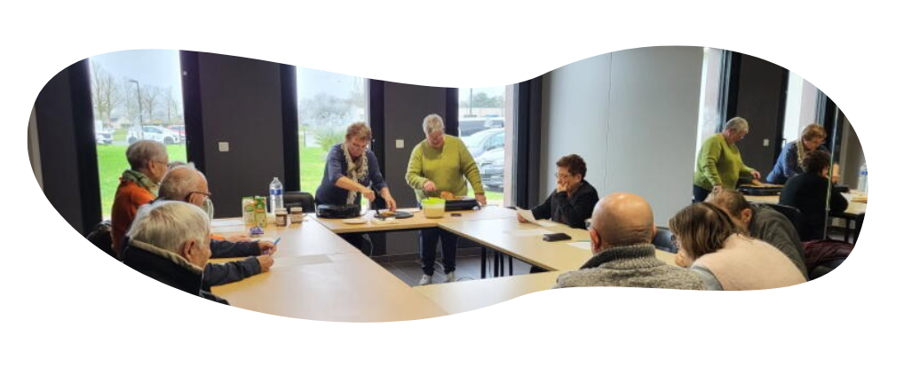 L’activité a débuté par un jeu de société visant à stimuler la mémoire et la concentration, puis s’est poursuivie par la cuisson des crêpes avec les bénéficiaires.