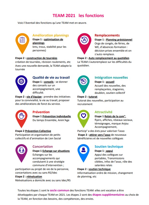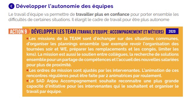Les réunions d’équipes TEAM (Travail d’Equipe Accompagnement Métiers), sont issues des projets de services de l’asso : développer l’autonomie des équipes.